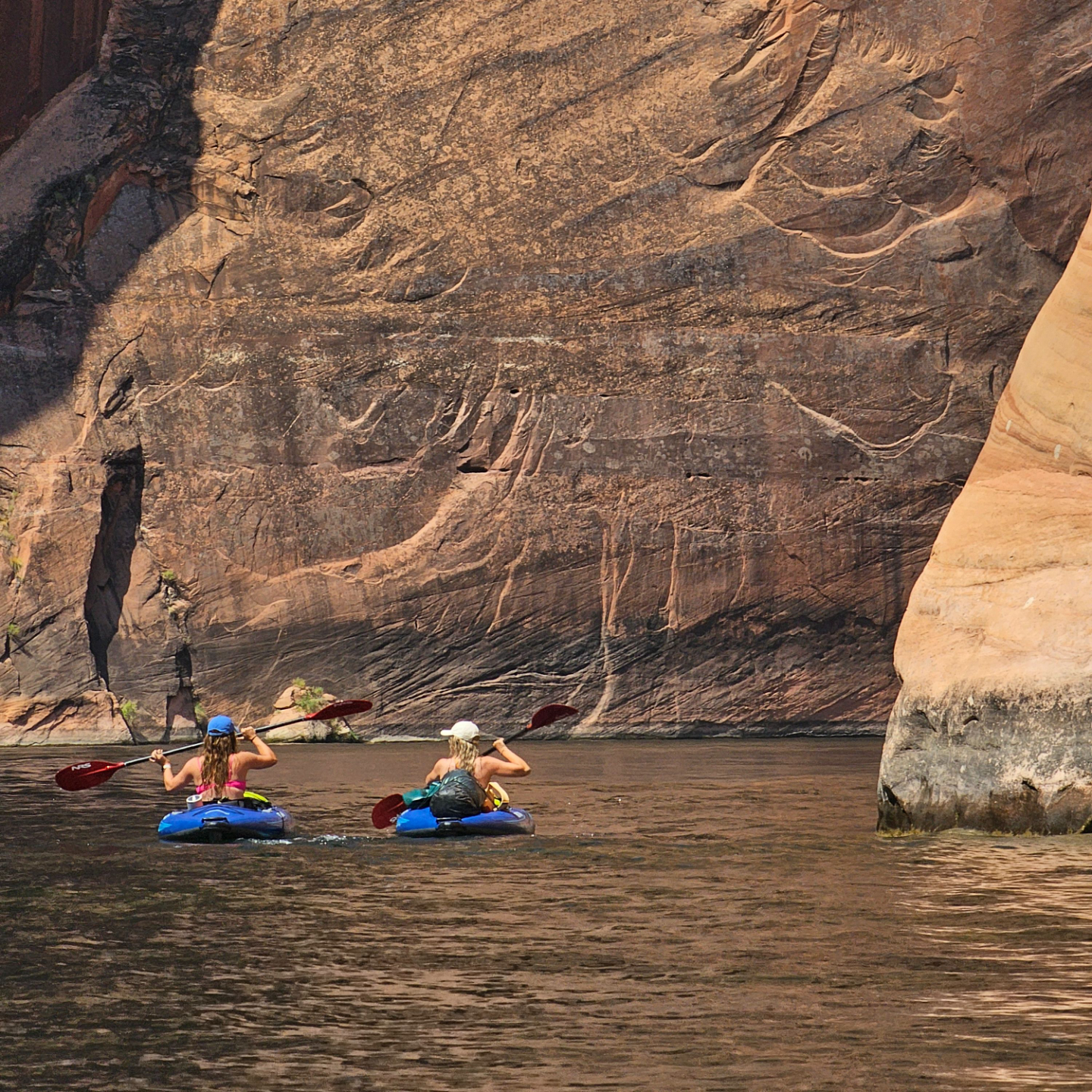 We'll load our kayaks onto a boat at Lees Ferry and backhaul up the Colorado River to the base of Glen Canyon Dam.